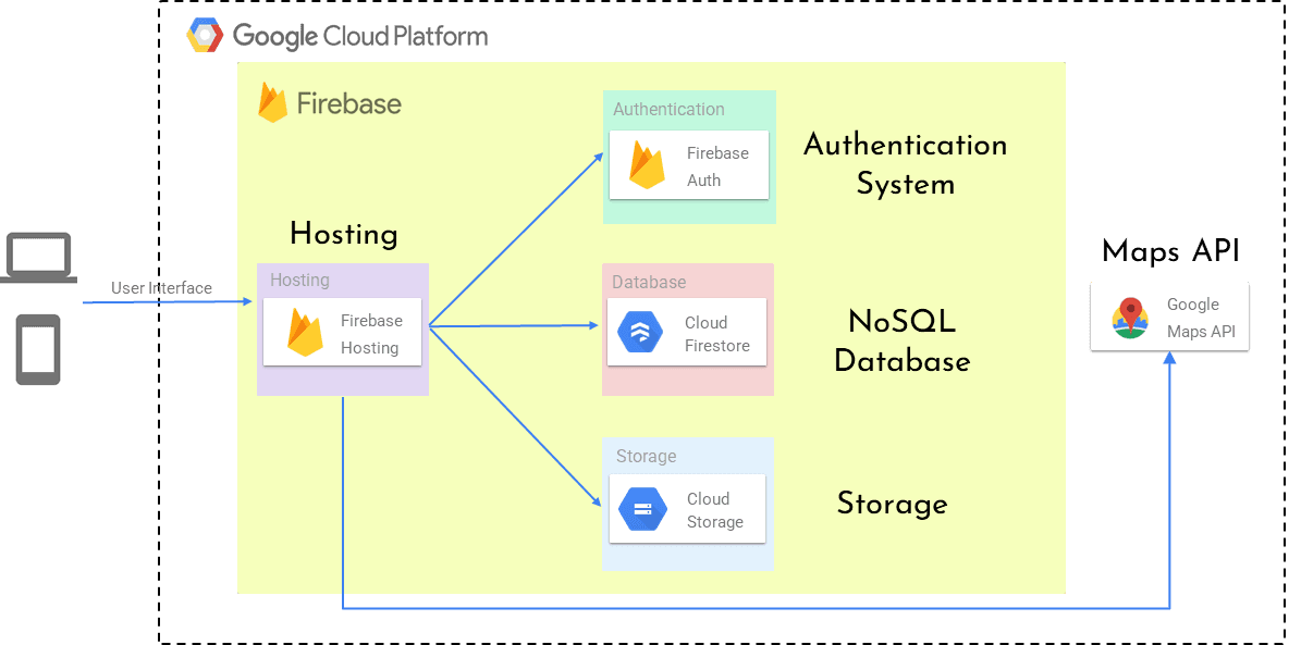 Additionally, within the Google Cloud platform, we integrate Google Maps APIs, enabling interactive map functionalities, location searches, and route planning.